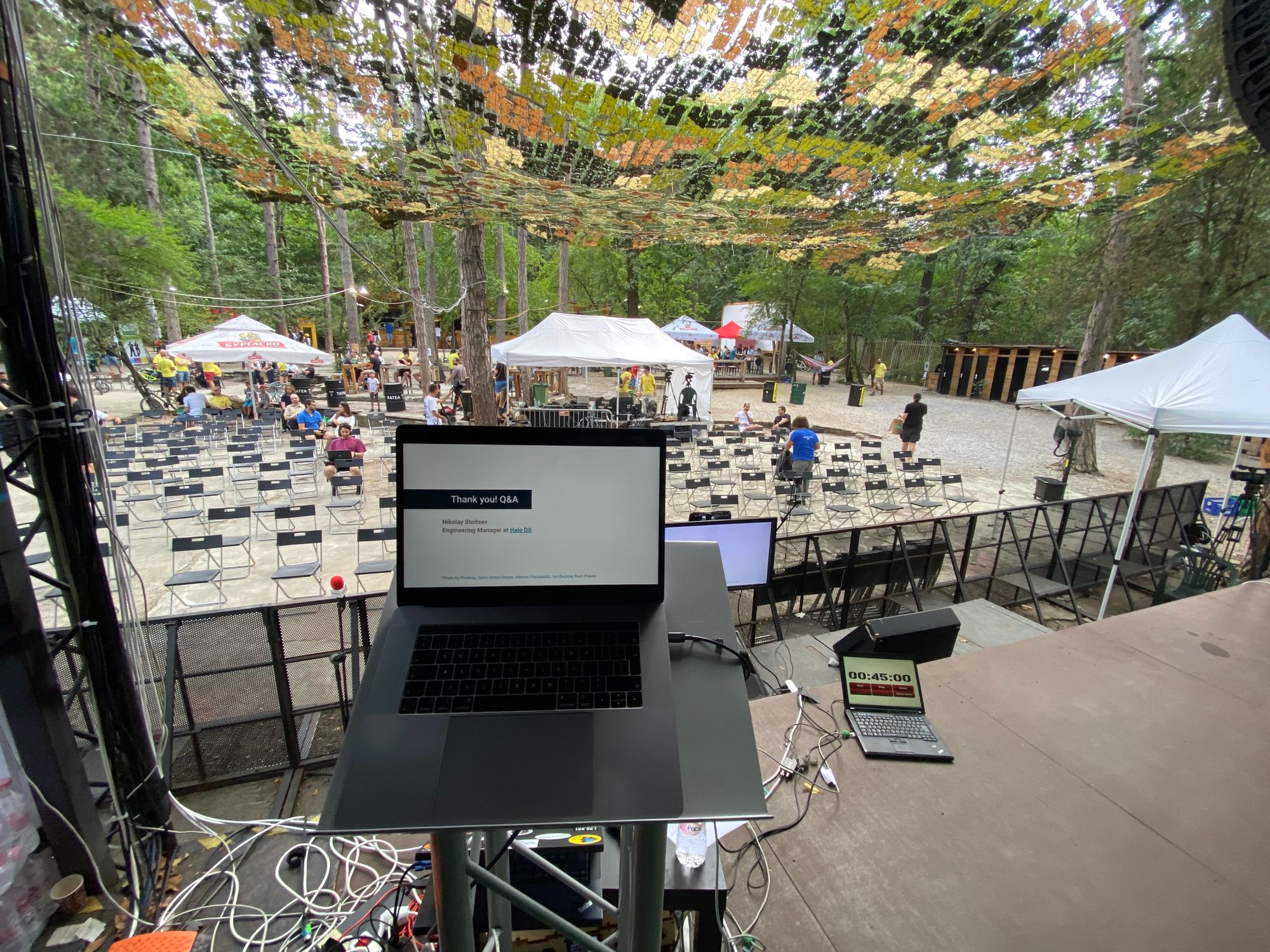 And lastly, here is what the stage looked like from the speaker's standpoint. It was my first offline conference since the pandemic began. And it was at an outdoor venue at a park. So the vibe was amazing.